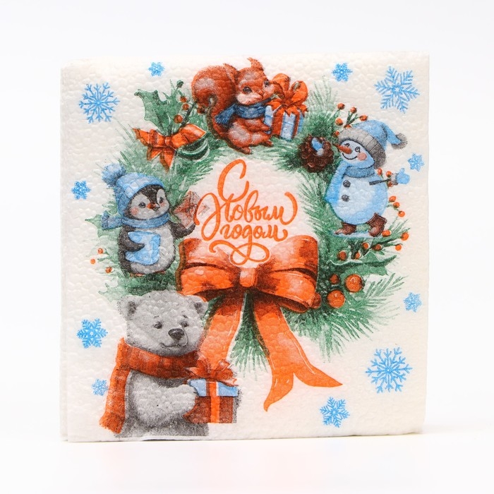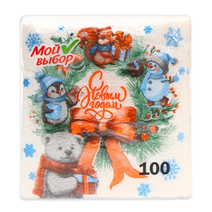 Новогодние салфетки бумажные Мой выбор «Рождественский Венок» 1 слой, 24х24 см, 100 шт