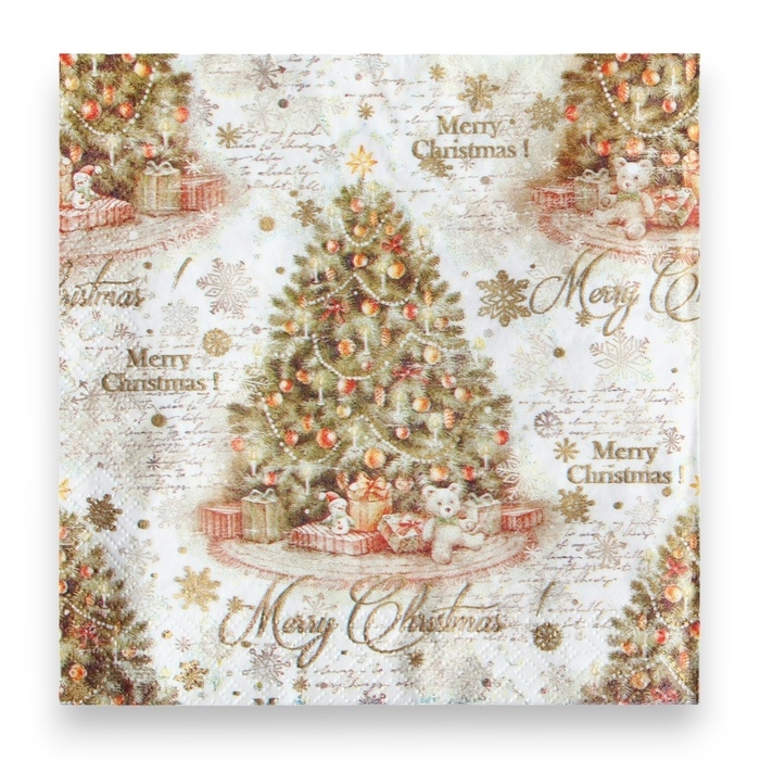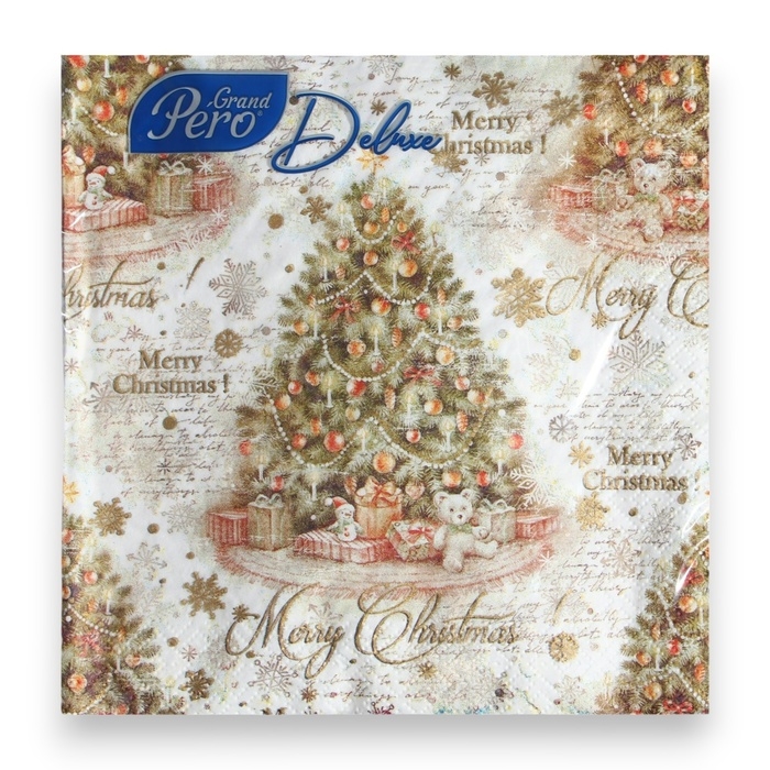 Новогодние салфетки бумажные Pero Deluxe «Винтажная ель», 3 слоя, 33х33, 20 шт.