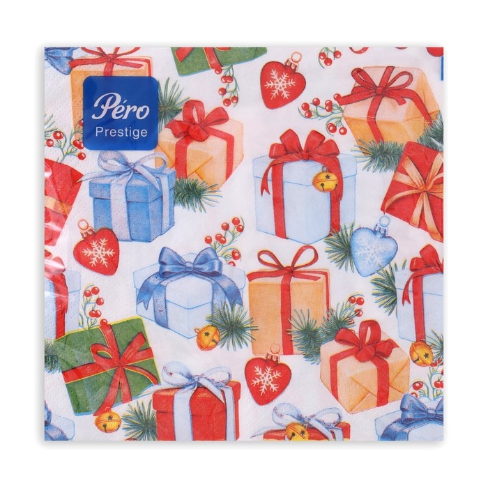 Новогодние салфетки бумажные Pero Prestige «Подарки», 3 слоя, 33х33 см, 20 шт