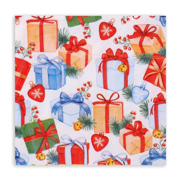 Салфетки бумажные «Дед Мороз и подарки», 33х33 см, набор 20 шт.