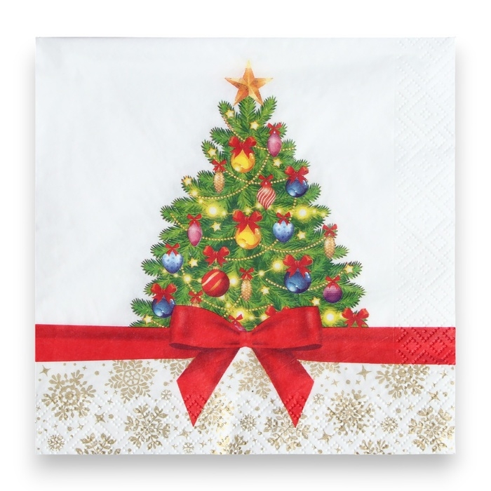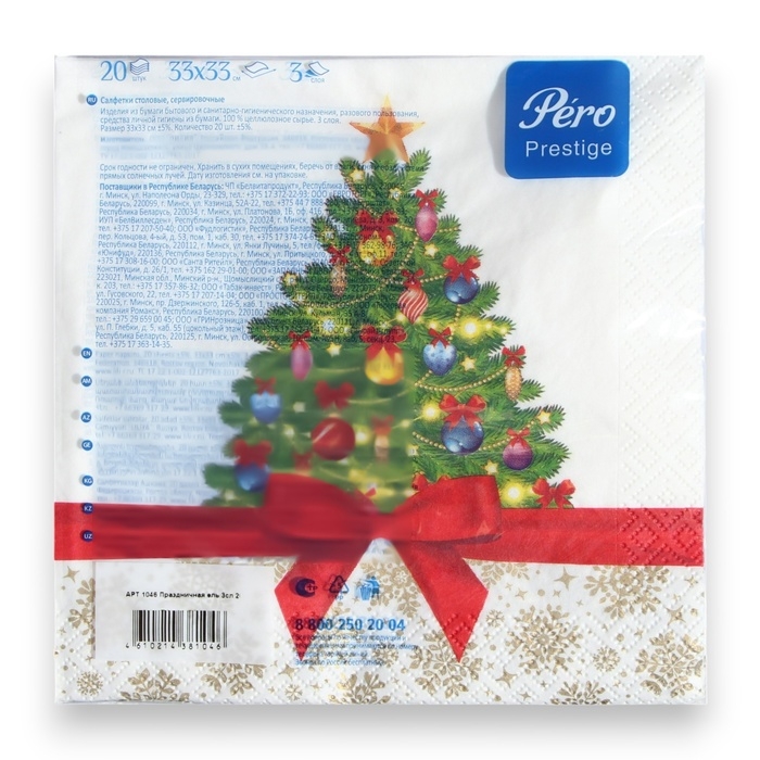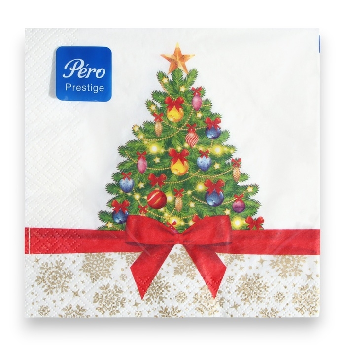 Новогодние салфетки бумажные Pero Prestige «Праздничная ель», 3 слоя, 33х33, 20 шт.