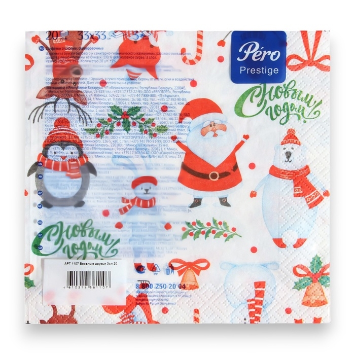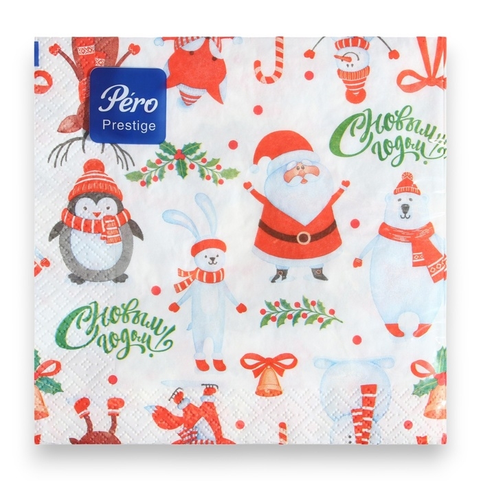 Новогодние салфетки бумажные Pero Prestige «Веселые друзья», 3 слоя, 33х33, 20 шт.