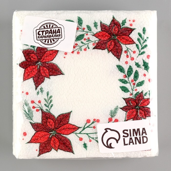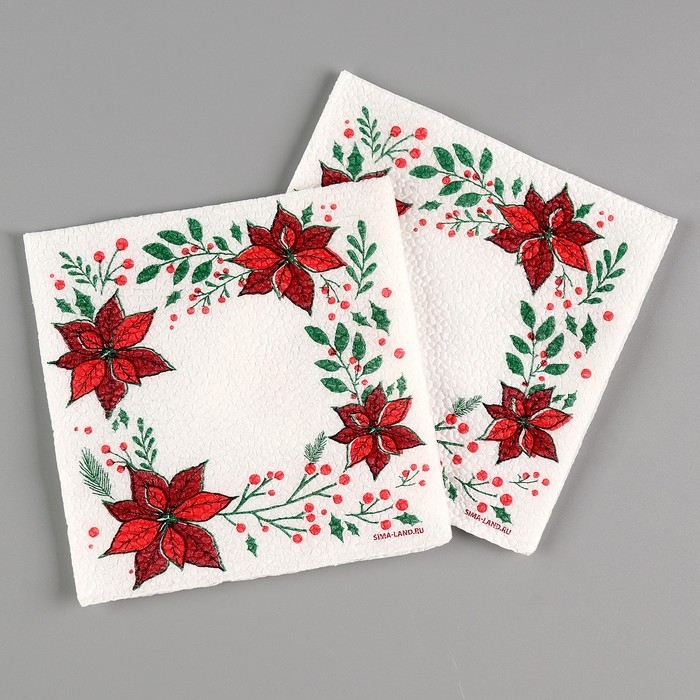 Новогодние салфетки бумажные «Узоры», однослойные, 24х24 см, 20 шт., на новый год