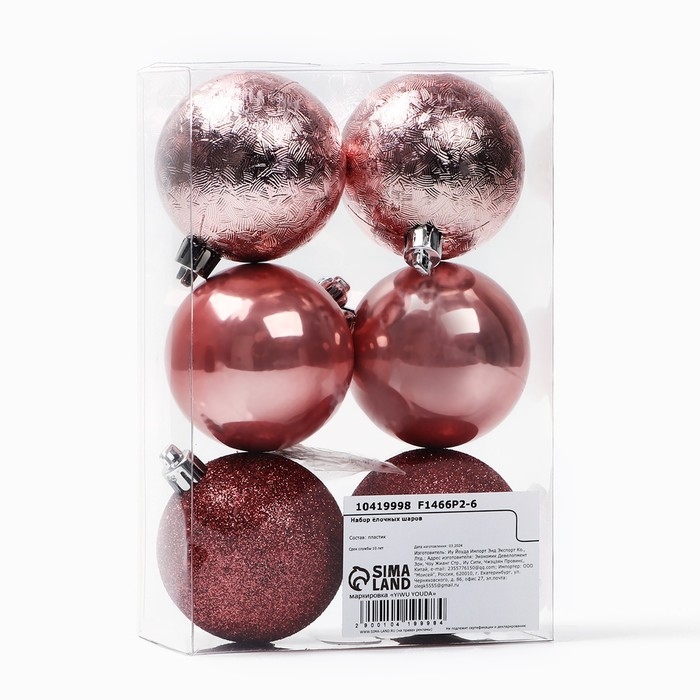 Новогодние шары ёлочные, на Новый год, d=6 см, 6 шт., цвет шампань