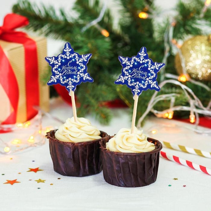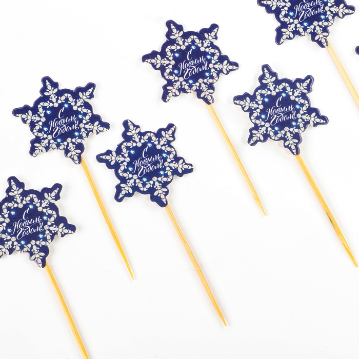 Новогодние шпажки «С Новым Годом!», снежинка, набор 12 шт.