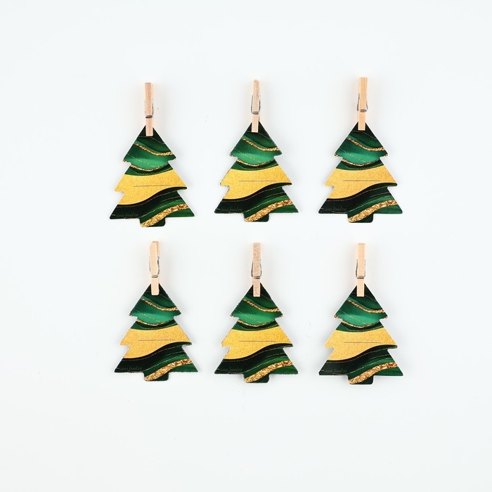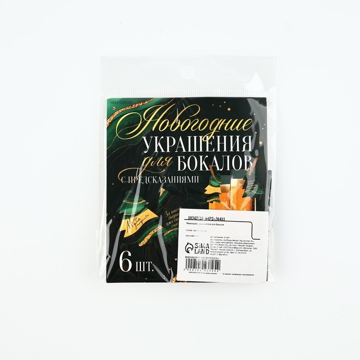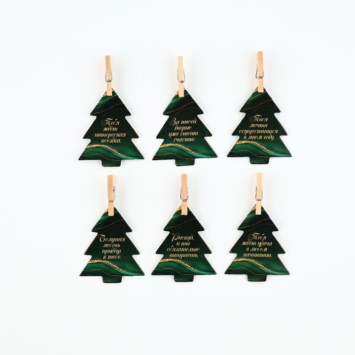 Новогодние украшения для бокалов на Новый год с предсказаниями, ёлочки, 4,2 х 5 см, 6 шт.