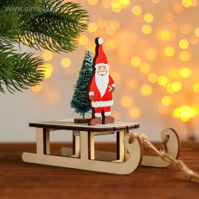 Новогодний декор с подсветкой «Дед мороз на санках» 2 круглые, 8х18х15,5 см