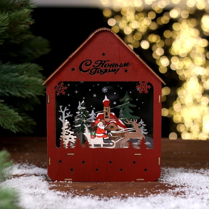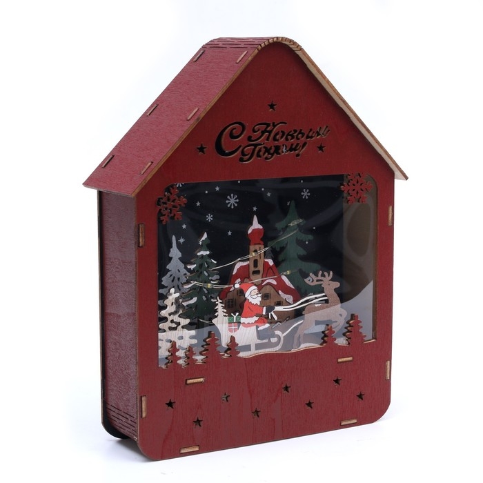 Светодиодная фигура «Дом с Дедом Морозом» 12 × 17 × 4 см, дерево, батарейки АААх2 (не в комплекте), свечение тёплое белое