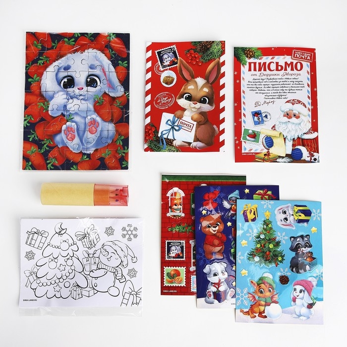 Карандаши, Наклейки, Пазлы, Письмо Деду Морозу, Раскраска, Тетрадь