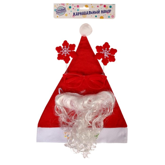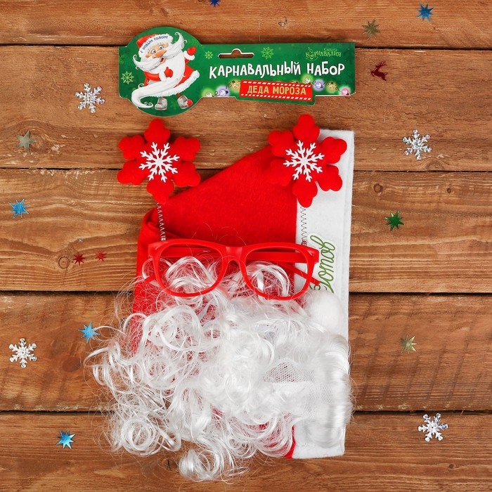 Новогодний карнавальный костюм «Дед Мороз к празднику готов!» (колпак + очки + борода), на новый год