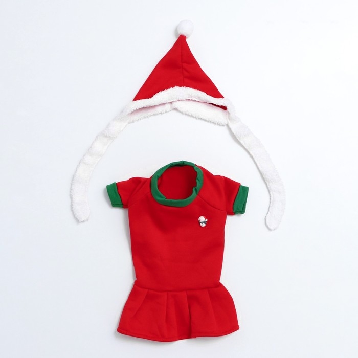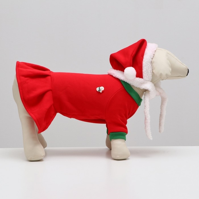 Новогодний костюм "Снегурочка" для собак, размер XL, красный (ДС 38, ОШ 38, ОГ 48 см)