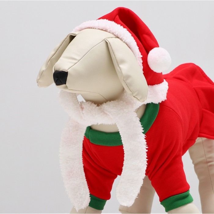 Новогодний костюм "Снегурочка" для собак, размер XS, красный (ДС 18, ОШ 22, ОГ 30 см)