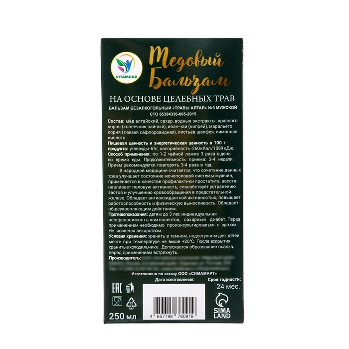 Новогодний медовый бальзам алтайский "Мужской", 250 мл