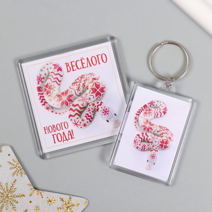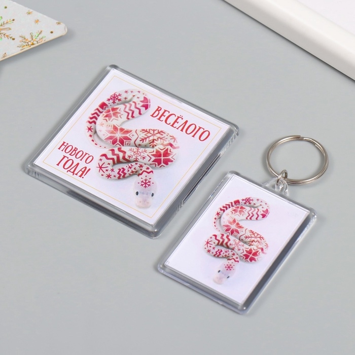 Новогодний набор "Змея. Узоры" (брелок 3,5х5 см, Новогодний магнит 5,7х5,7 см)