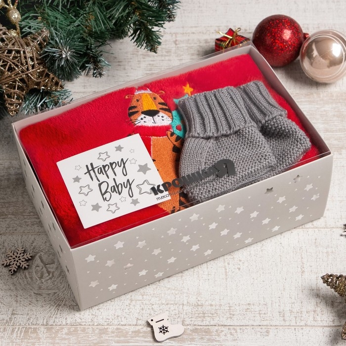 Новогодний подарочный набор Крошка Я «Тигруля», плед 90х100см, пинетки 10-12 см