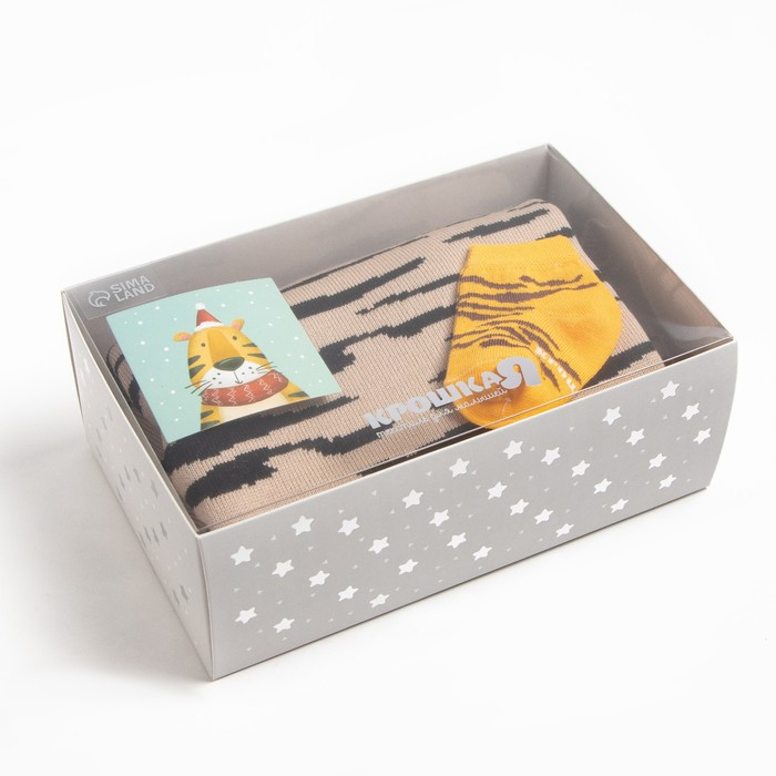 Новогодний подарочный набор Крошка Я «Веселый тигруля», плед 90х90 см, носки10-12р-р