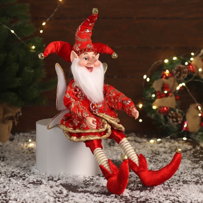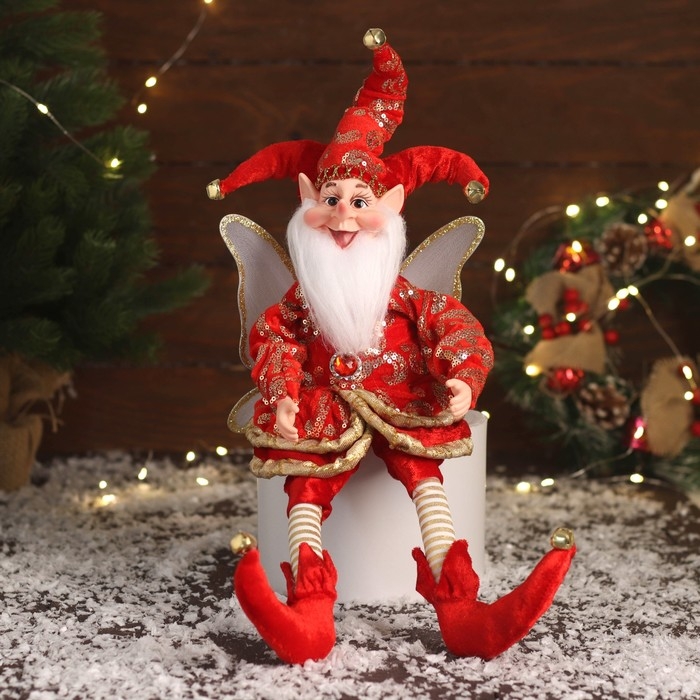 Новогодний шут "С крылышками" сидит, двигается, 39х14 см, красный