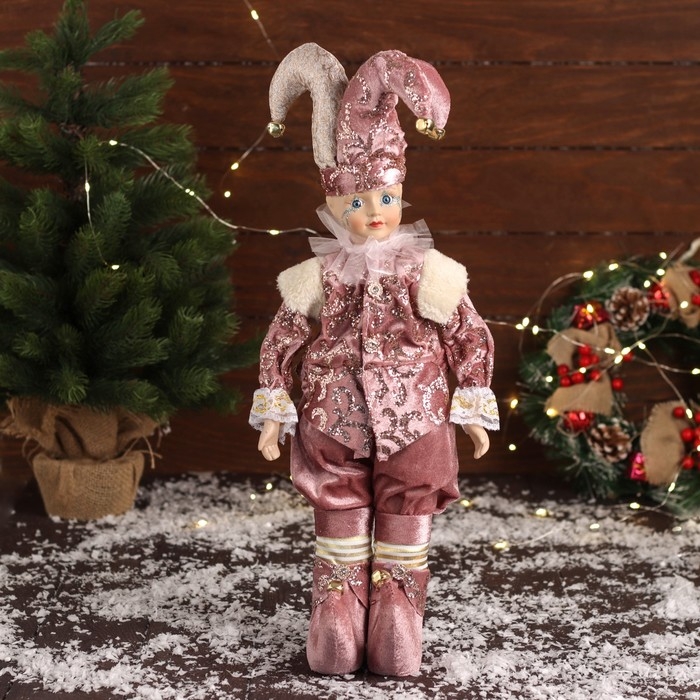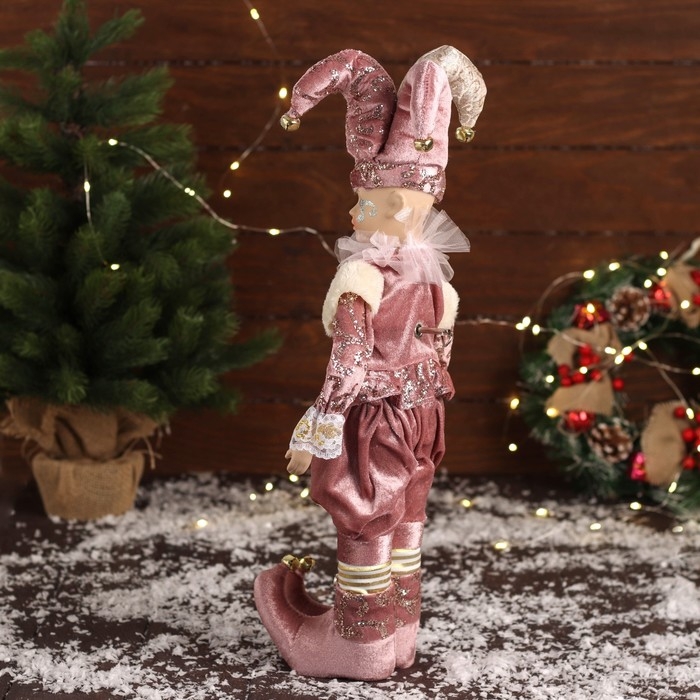 Новогодний шут "В блестящем костюме" двигается, 48х16 см, розовый
