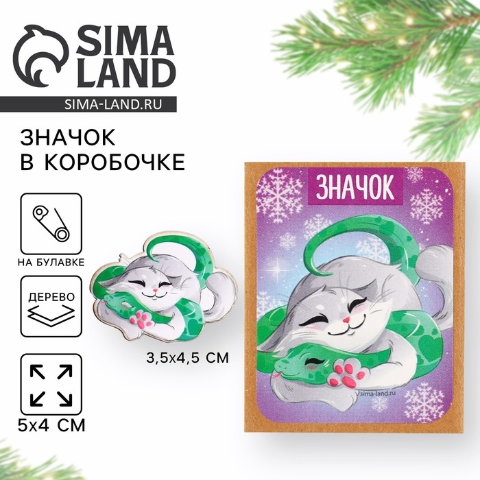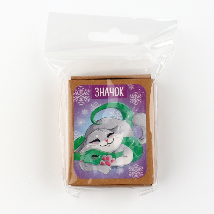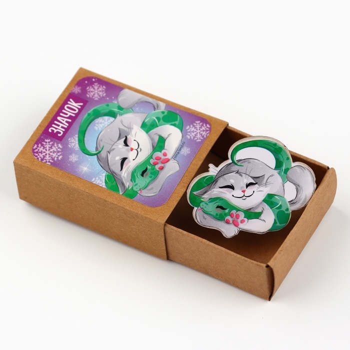 Новогодний значок в коробочке «Новый год: Новогодний котик» 3,5 х 4,5 см
