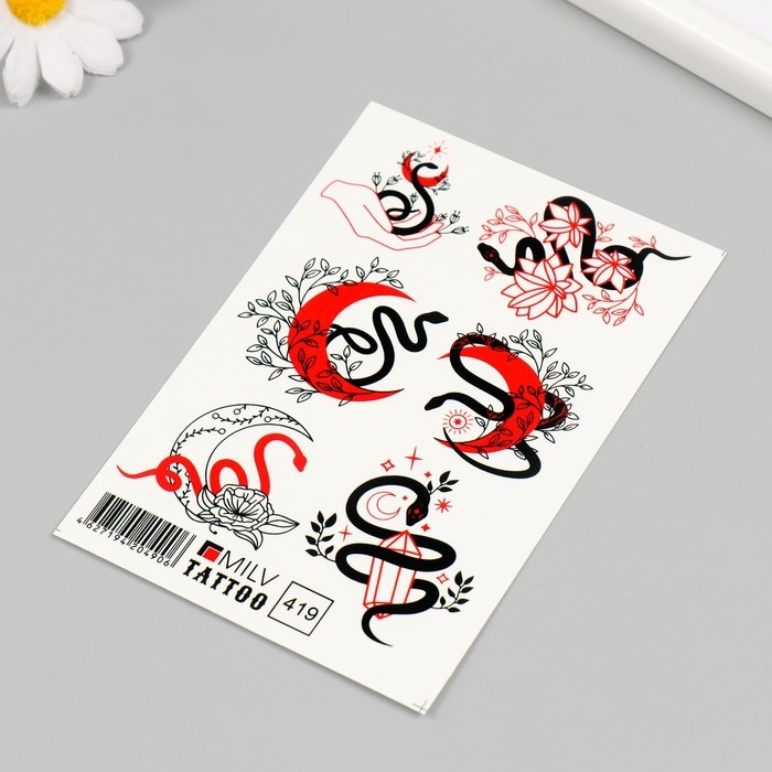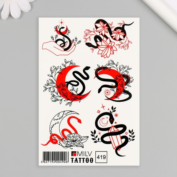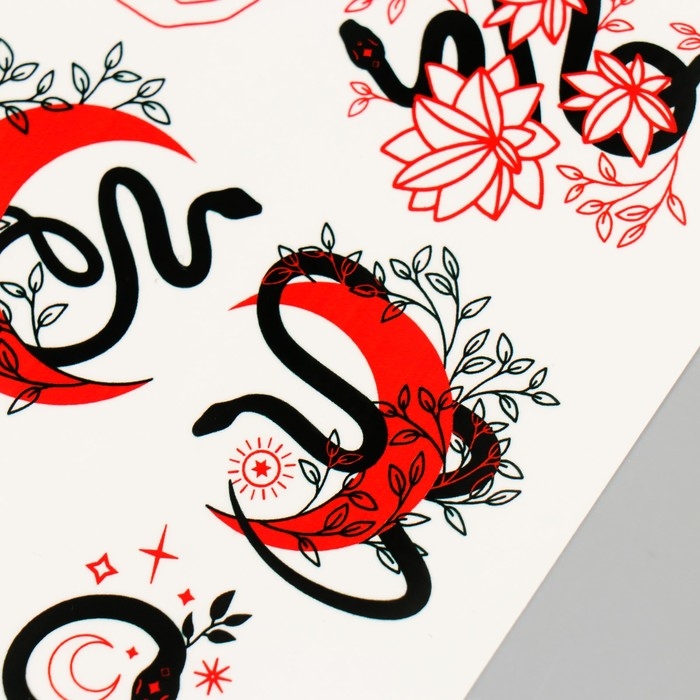 Новогодня татуировка на тело "Месяц, змеи" 10х15 см