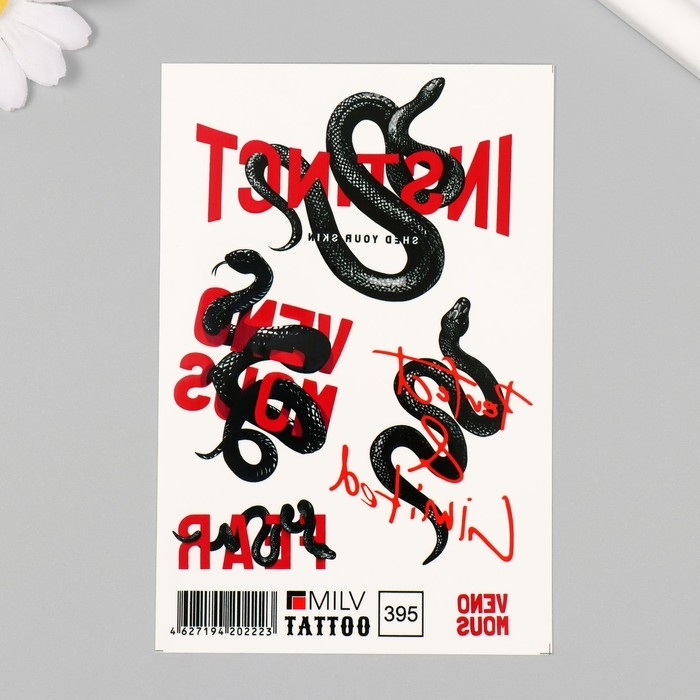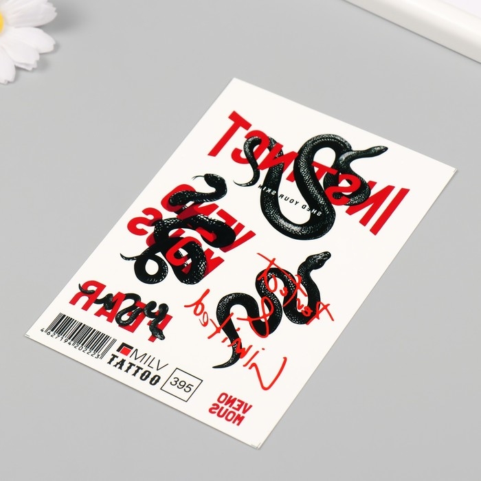 Новогодня татуировка на тело "Змеи с надписями" 10х15 см