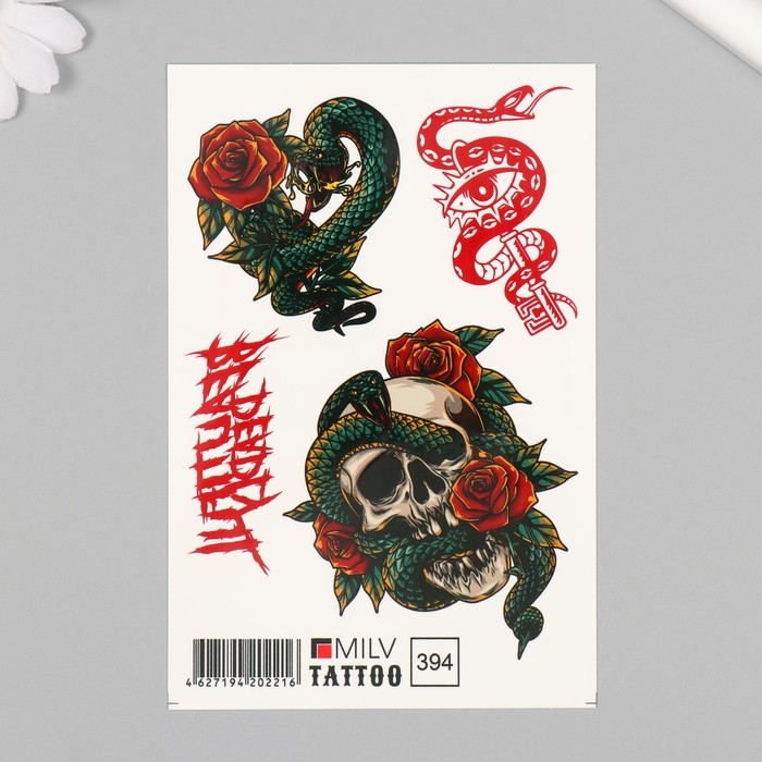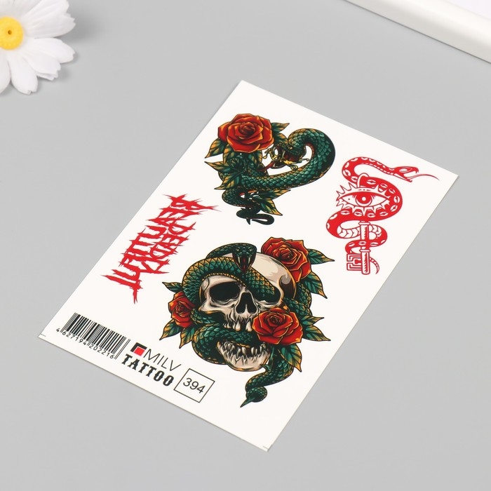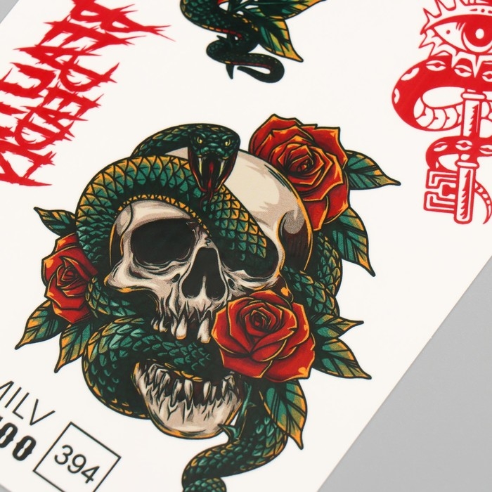 Новогодня татуировка на тело "Змея с черепом" 10х15 см