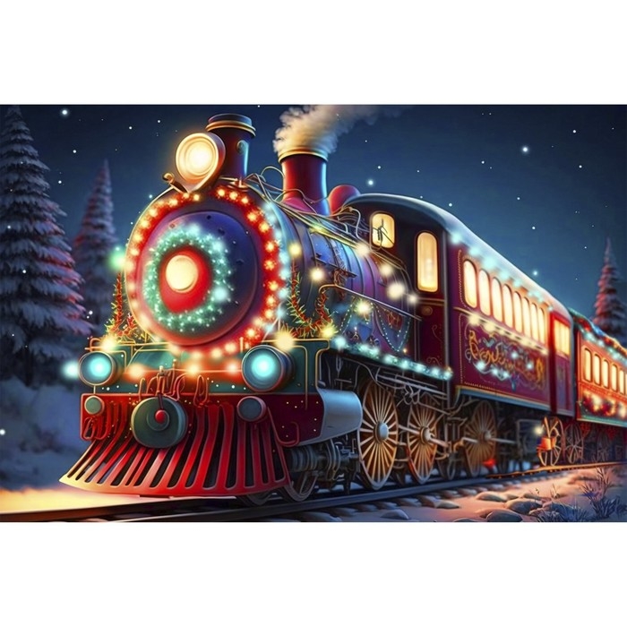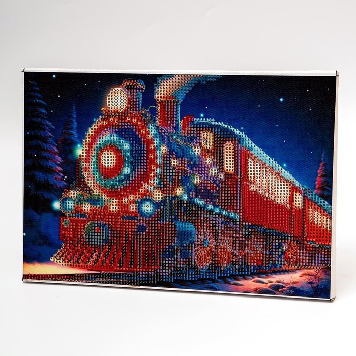 Новогодняя алмазная мозаика с гирляндой на раме с частичным заполнением «Новый год. Новогодний экспресс», 20 х 30 см