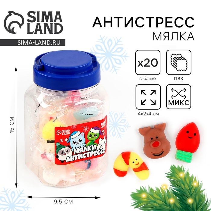 Новогодняя антистресс сквиш мялка, змея «Весёлый Новый год», в банке, фасовка 20 шт.