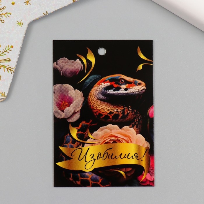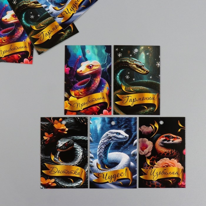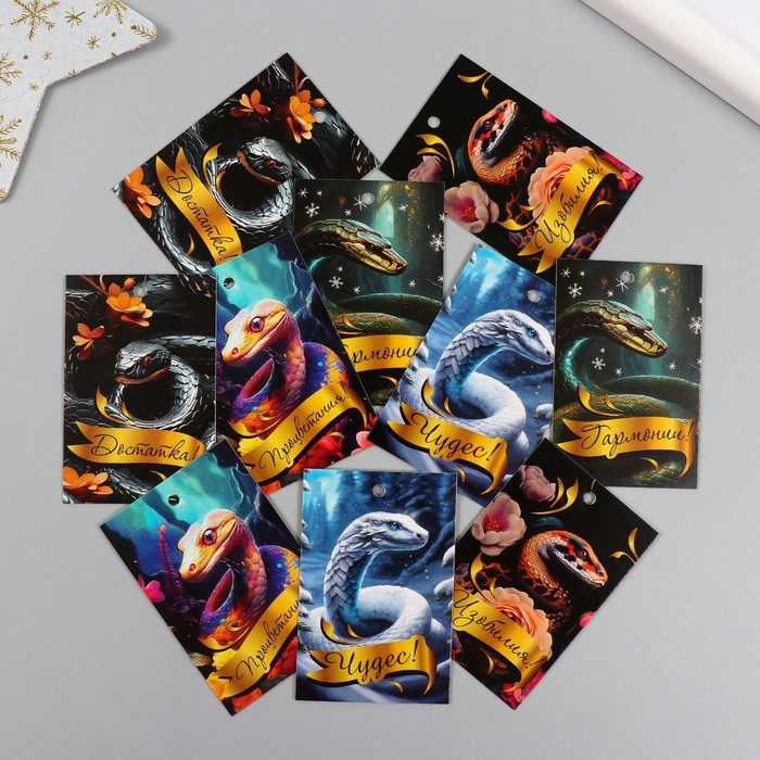 Новогодняя бирка картон "Сказочные змеи" Новогодний набор 10 шт (5 видов) 4х6 см