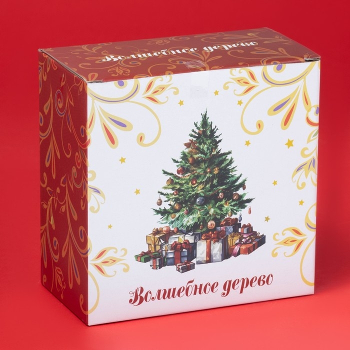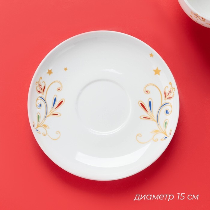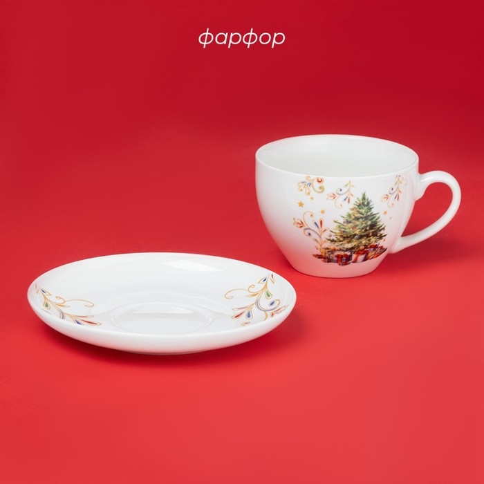 Новогодняя чайная пара Доляна «Волшебное дерево», 2 предмета: чашка 210 мл, блюдце d=15 см, фарфор, цвет белый