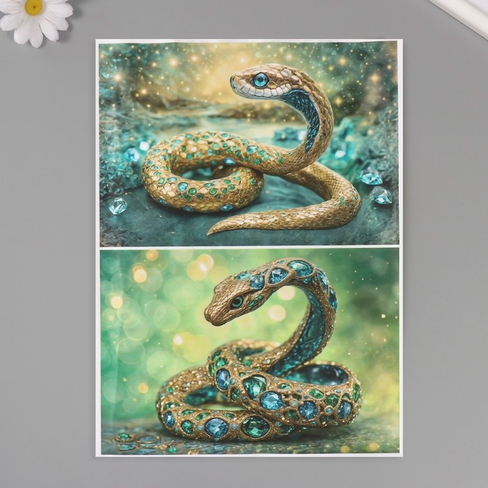 Новогодняя декупажная карта "Драгоценная змея", плотность 45 г/м2, формат А4
