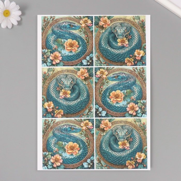 Новогодняя декупажная карта "Изумрудная змея", плотность 45 г/м2, формат А4