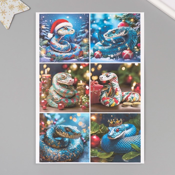 Новогодняя декупажная карта "Новогодние змеи", плотность 45 г/м2, формат А4
