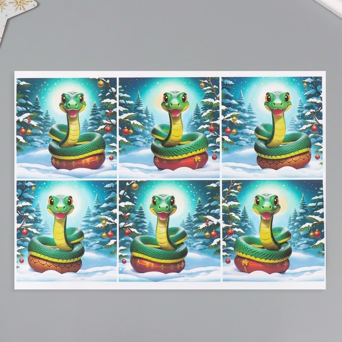 Новогодняя декупажная карта "Новогодняя змея", плотность 45 г/м2, формат А4