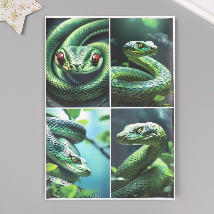 Новогодняя декупажная карта "Зелёная змея", плотность 45 г/м2, формат А4