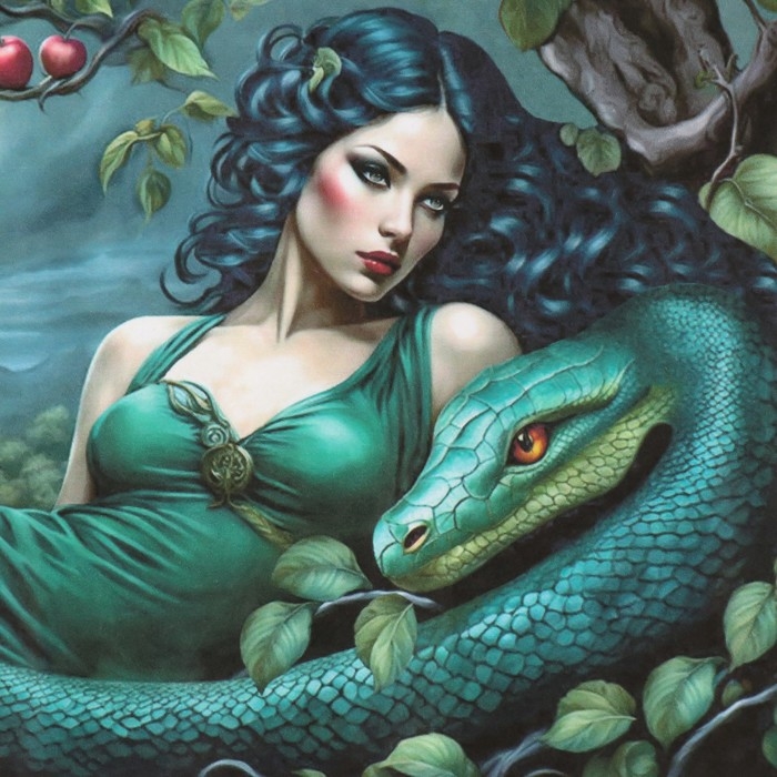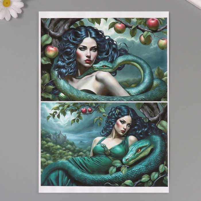 Новогодняя декупажная карта "Женщина со змеей", плотность 45 г/м2, формат А4