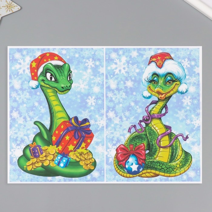Новогодняя декупажная карта "Змеи. С Новым Годом", плотность 45 г/м2, формат А4