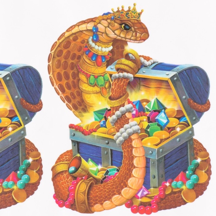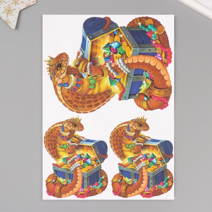 Новогодняя декупажная карта "Змея с сундуком", плотность 45 г/м2, формат А4