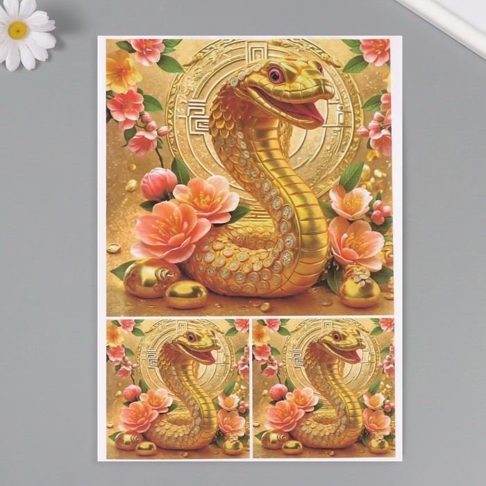 Новогодняя декупажная карта "Золотая змея", плотность 45 г/м2, формат А4