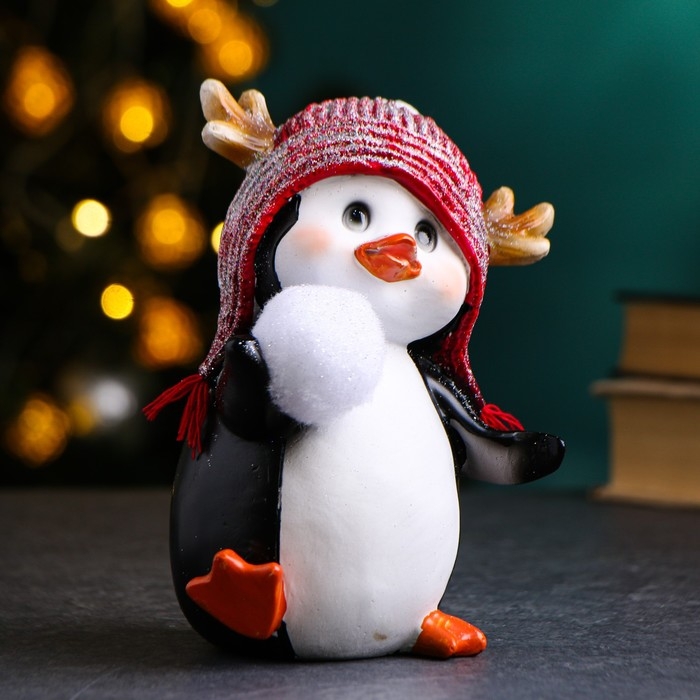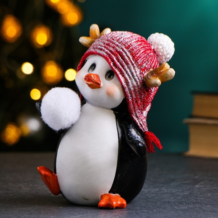 Новогодняя фигура "Пингвиненок со снежком" в правом крыле, 12х12х17см