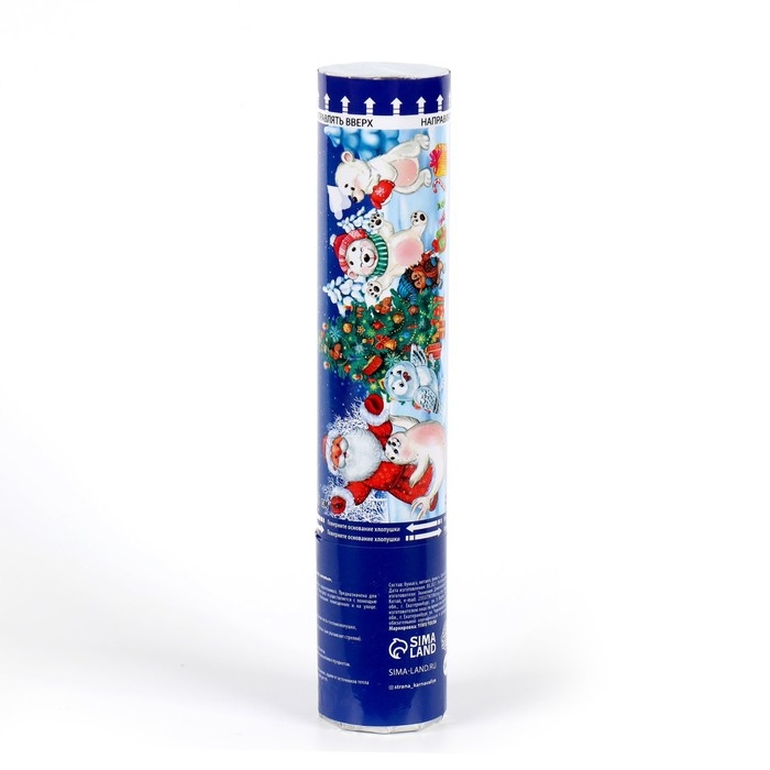 Новогодняя хлопушка пневматическая «Счастья, радости, веселья» мишки, фольга-серпантин, 20 см