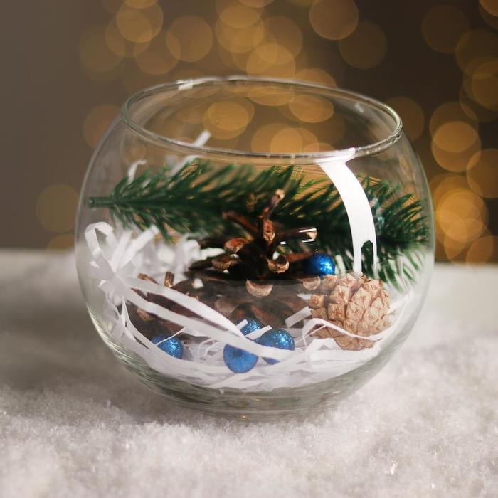 Новогодняя композиция состоит из натуральных материалов и идеально дополнит атмосферу праздника. Ей можно украсить праздничный стол, разместить на подоконниках или использовать для фотосессий.