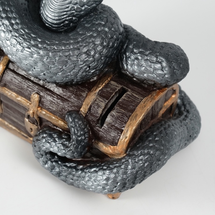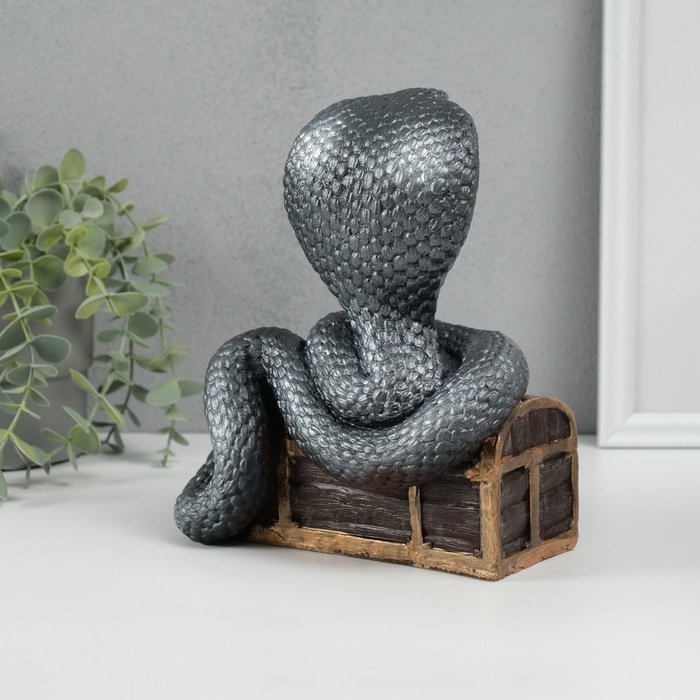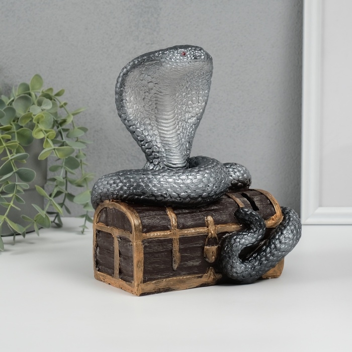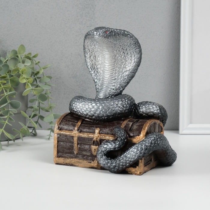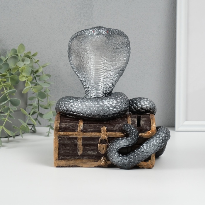 Новогодняя копилка "Кобра на сундуке " 20 х 17 х 12 см, серебристый