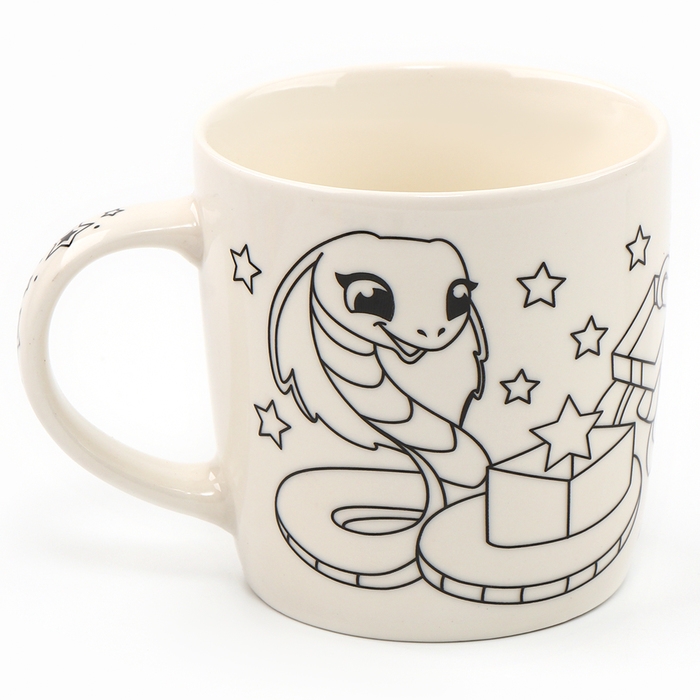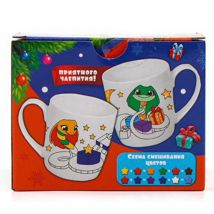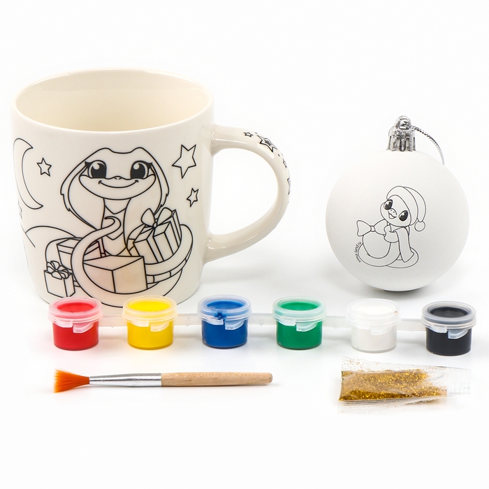 Новогодняя кружка под раскраску с ёлочным шаром «Новый год! Змея с подарками», 300 мл, набор для творчества, символ года 2025