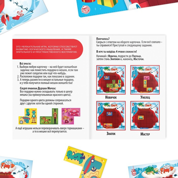 Новогодняя магнитная головоломка «Новый год: Подарки Деда Мороза», 48 карт, 10 магнитных деталей, 8+
