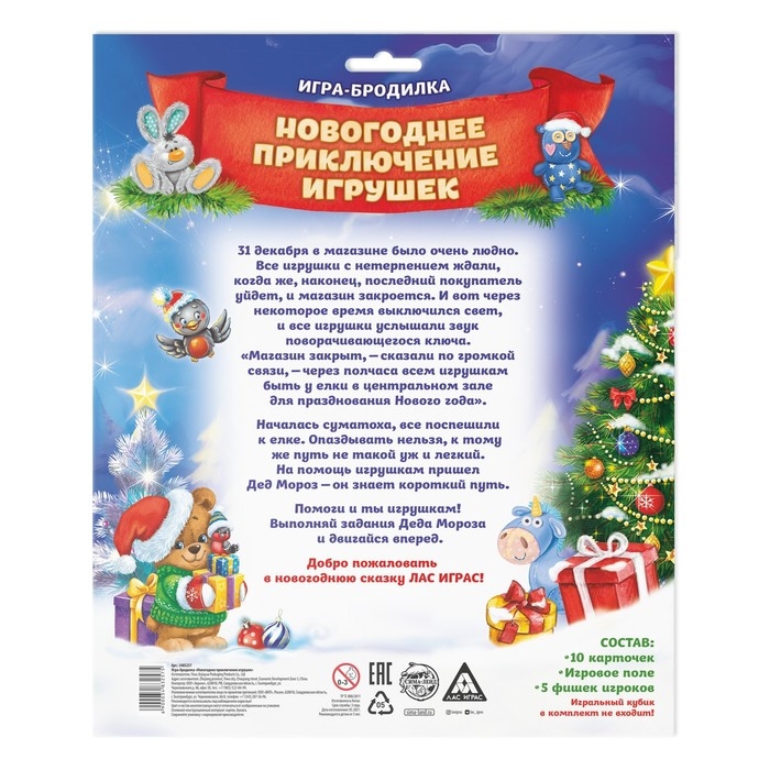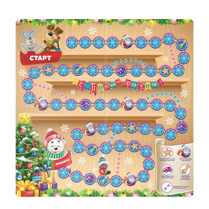 Новогодняя настольная игра-бродилка «Новый год: Приключение игрушек», 10 карт, 5 фигурок, 5+