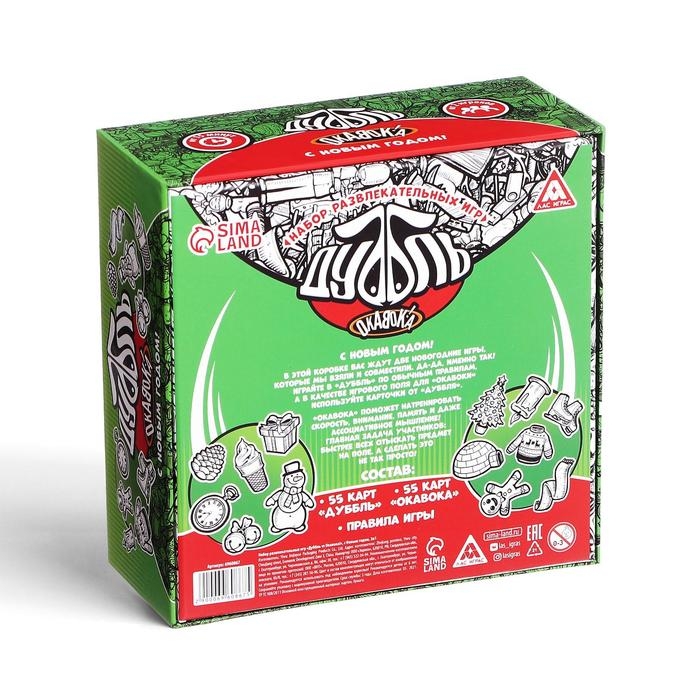В этой коробке вас ждут две новогодние игры, которые мы взяли и совместили. Да-да, именно так! Играйте в «Дуббль» по обычным правилам, а в качестве игрового поля для «Окавоки» используйте карточки от «Дуббля». Всё очень просто, а главное — весело!