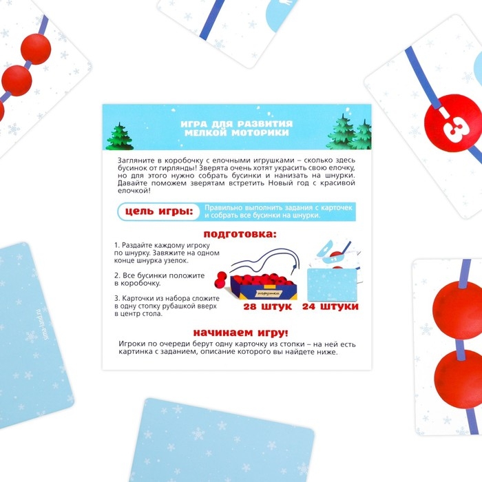 Новогодняя настольная игра «Новый год: Гирлянда», 24 карты, 4 шнурка, 28 бусин, 3+