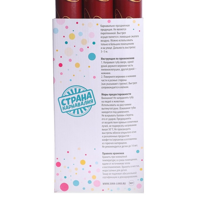 Для активации хлопушки необходимо повернуть нижнюю часть по часовой стрелке. Важно держать устройство вертикально, направив его верхнюю часть вверх. После активации из хлопушки вылетит конфетти.