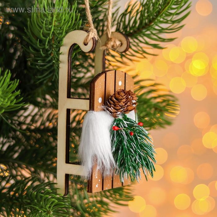Новогодняя подвеска «Санки с шишками» 5,5х5х12,5 см